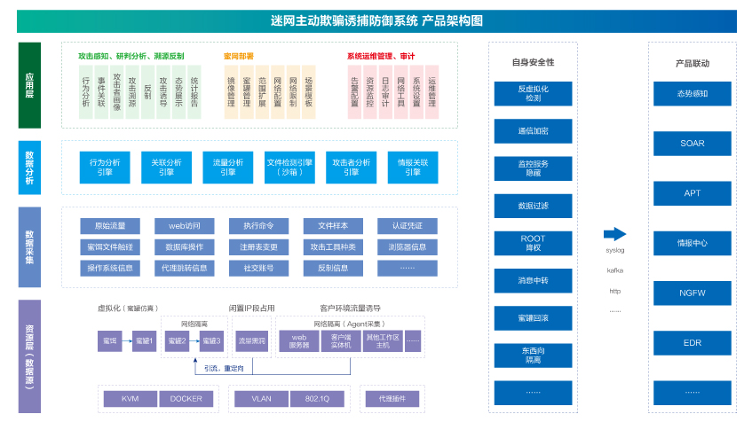 · 利用蜜罐捕捉攻擊流量映射至APT等檢測(cè)設(shè)備進(jìn)行深度分析,增加橫向威脅感知;